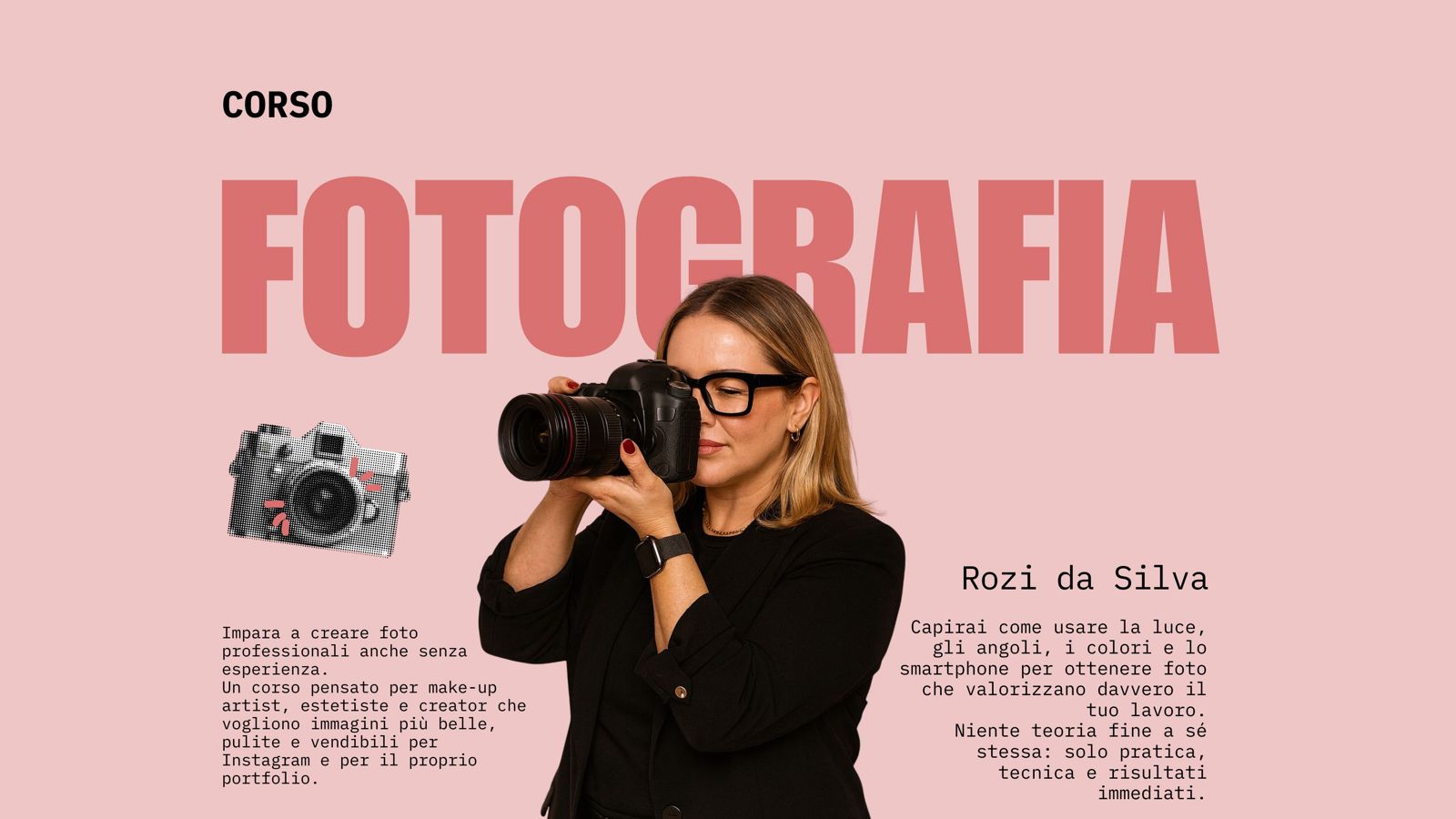 Non aspettare oltre! Ogni grande risultato inizia con la decisione di credere in te stessa. Iscriviti ai miei corsi e scopri come trasformare la tua passione in una professione!